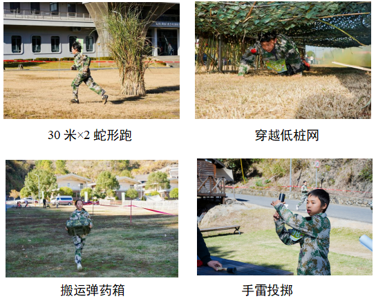 个人赛包括30米×2蛇形跑、穿越低桩网、搬运弹药箱、手雷投掷和武装奔袭等五个项目。赛场上,选手们身着统一迷彩服,勇于突破、挑战自我、磨砺意志,充分展现了新时代青少年昂扬向上的精神风貌和坚韧不拔的意志品质。