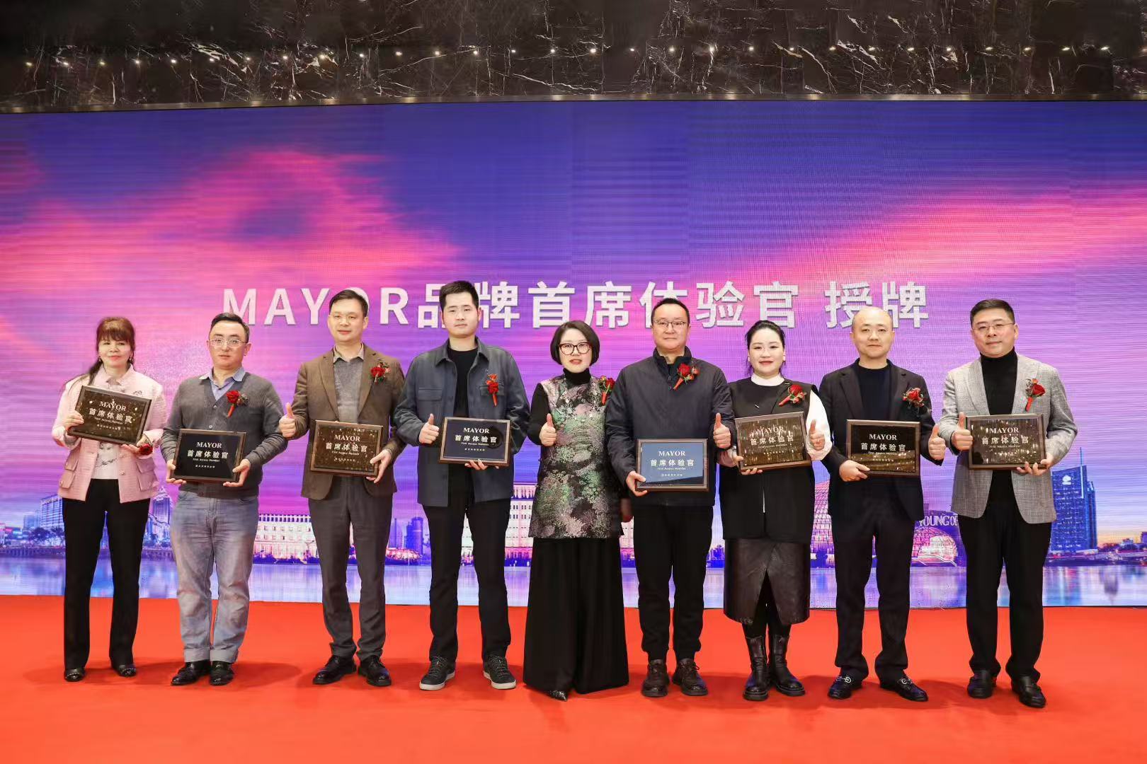 保亿集团副总裁莫剑飞,浙江卫视新闻联播主播江皓,杭州炎融网络科技董事长沈丽丽,杭州惠购商盟董事长周政呈,杭州瀚森企业管理服务有限公司总经理严力波,远程商用车集团投资经理李泽成,金元大建设控股副总裁王卫明,杭州埃埃建筑设计总经理杨晔成为“MAYOR 品牌首席体验官”,雅戈尔服装控股副总裁、MAYOR 品牌总经理陆萍女士现场授牌,期待通过深度体验反馈,让高端定制服务更懂杭州市场、更贴合本地需求。