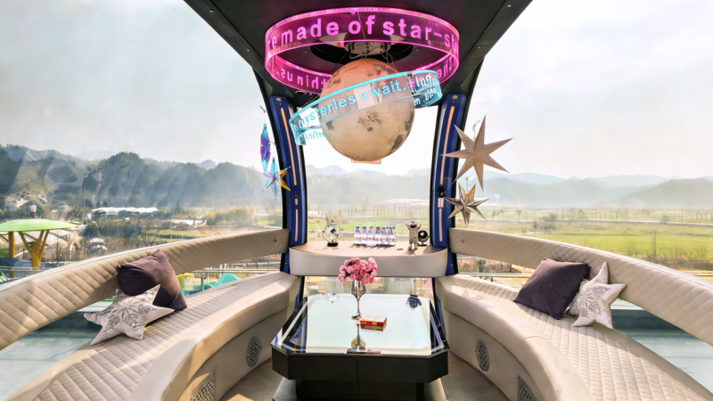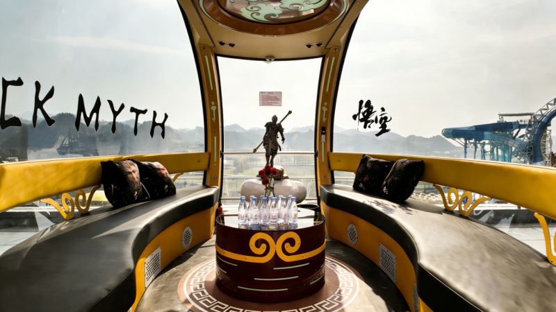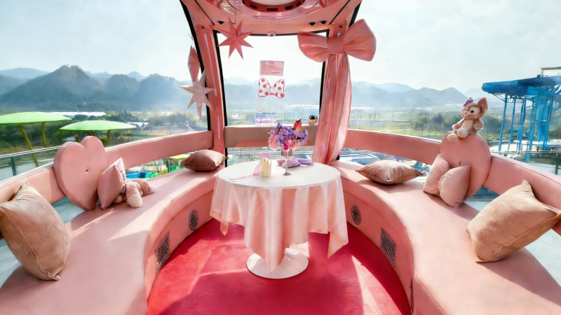 为契合春节、情人节双节氛围,“天目之心”打造五大特色主题轿厢,精准匹配不同游客的游玩需求,实现“一厢一景一体验”的差异化玩法。吴越主题轿厢以钱王文化为核心,还原吴越经典文化场景,游客入厢即可互动吴越王钱弘俶NPC,更有机会获赠水上乐园门票、限定文创等惊喜福礼,实现文化体验与福利打卡双丰收;爱情主题轿厢以浪漫浅粉为主调,打造情侣专属高空约会空间,是双节告白、甜蜜打卡的绝佳场景;星空主题轿厢以深邃黑蓝营造梦幻星空氛围,解锁“手可摘星辰”的沉浸式体验;音乐主题轿厢配备专业音响与点歌系统,让游客在131.4米高空享受私人演唱会;游戏主题轿厢融入热门游戏元素,打造全国罕见的高空沉浸式游戏体验,满足年轻群体的游玩需求。