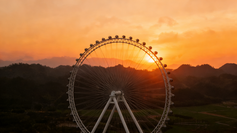 作为浙江最高的摩天轮,“天目之心”从设计到体验都打造了独树一帜的竞争优势,区别于传统城市摩天轮的都市景观视野,其背靠天目山连绵群山,以山林云海为天然背景,将自然景观与高空体验深度融合。摩天轮采用12人私密吊厢设计,拒绝拥挤打卡,让游客在缓缓攀升的过程中,独享高空视野:俯瞰天目未来谷错落景致,远眺天目山层峦叠嶂,白日赏山林盛景,夜晚观璀璨星空,在远离城市喧嚣的高空,解锁沉浸式的自然观景体验,成为情侣约会、家庭出游、朋友相聚的全新选择。