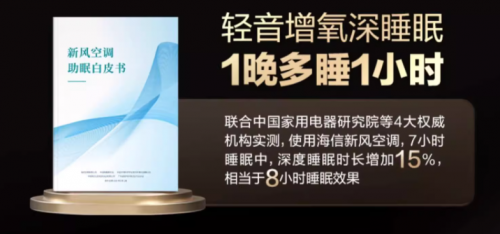 改善睡眠质量已经成为当下消费者选购卧室空调产品的首要动因。在静音省电的同时,能够更好的满足消费者对健康呼吸的需求,将成为各大空调品牌的核心竞争点。作为国内最先开始生产新风空调的品牌,海信新风空调X3Pro再次实现技术突破,其行业首创的上下双新风口对流技术,不仅实现扩散效率提升11%,有效提升室内空气换新速率,更能将室内CO₂浓度稳定控制在优质睡眠区间,带来“1晚多睡1小时”的高效睡眠体验。