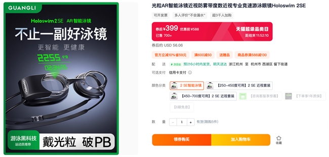 普惠级AR智能泳镜震撼登场!光粒Holoswim 2SE 限时发售中