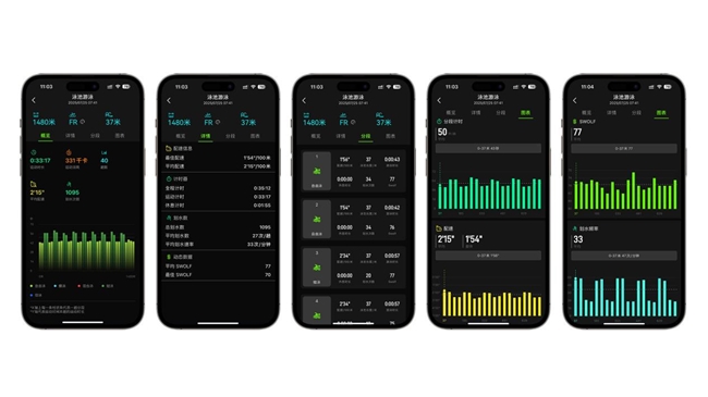 • 专业数据分析平台:12 项游泳数据一键同步,支持按次、周、月、年生成图表化分析报告。用科学算法深度解析每一次游泳,结合DeepSeek大模型分析,比教练更懂你的运动状态!