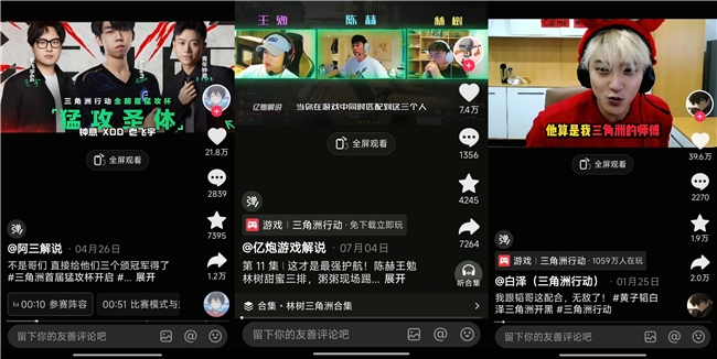如果把平台范围拓展至抖音、B站,还能发现更多证据。三角洲已成为抖音游戏热度榜第一,单话题播放次数超过千亿,和情感、美食等生活类话题持平,还衍生出了数百亿播放的小剧场版块,不少不玩游戏的乐子人也会来这儿消遣。