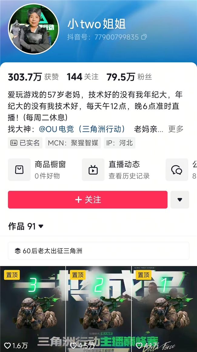 甚至还时常出现六旬老太深夜猛攻、二战老兵700码外打击法西斯的抽象话题,其中还有如小two姐姐这样的案例,57岁退休猛攻一下,没想到成了近百万的知名KOL。