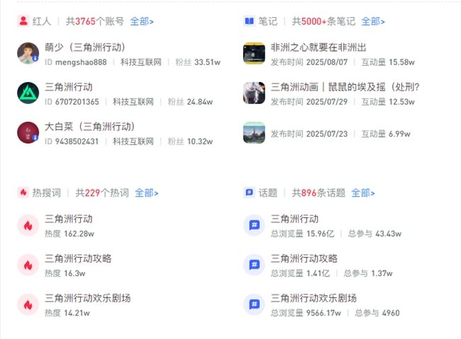 截至2025年8月,产品已经在小红书上产生了至少229个热词和近900条话题,单话题阅读量近16亿。不到一年内,平台入驻垂直红人超过3700个,其中包括多个粉丝数在10万以上的头部KOL。