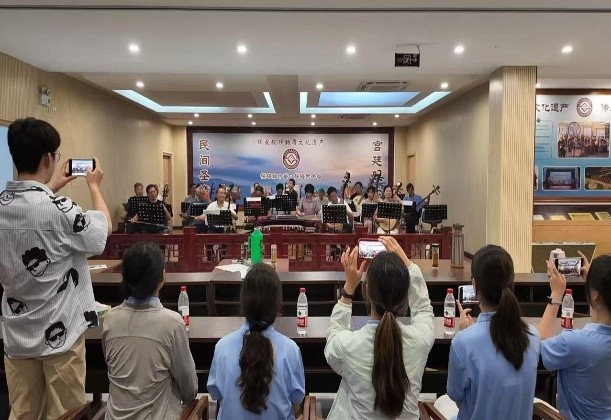夜晚,实践团聆听了传承人们的演奏。这支队伍的平均年龄高达六十多岁,却始终坚守传承使命。二胡的婉转、竹笛的清脆、古筝的深沉,各种乐器交织,构成了一幅动人的音乐画卷。表演结束后,实践团与楼刚会长签订共建大学生社会实践基地建议书,标志着双方将在非遗传承与保护领域深度合作,将其打造成大学生学习和实践非遗技艺的重要平台,为非遗传承注入青春活力,开启文化传承与社会实践结合的新篇章。